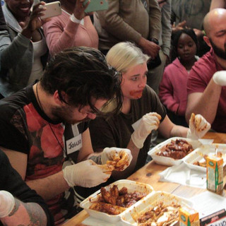 The Rules: - You accepted the Johnny Hexburg Ferno Wing Challenge, congratulations and good luck - The challenge is to eat 20 FERNO WINGS in 5 minutes - You must eat all the wings - The wings must be clean of all meat - if the bones are not clean you will be disqualified - You must eat the meat of the wings with your mouth you can’t pull the meat of with your fingers - if you use your fingers to pull the meat off you will be disqualified - You may not wipe the sauce of the wings, this will result in immediate disqualification - You must stay seated for the whole duration of the challenge - if you get up, you will be disqualified - You can drink after the first 2 wings are clean - if you drink before the first 2 wings are clean of meat, you will be disqualified - Any vomiting will result in immediate disqualification and you need to clean up - You are not allowed to clean you mouth with any cloth or wipe during the challenge - if you wipe your face you will be disqualified - If your 20 wings are done within the 5 minutes and your mouth is clear of meat, you raise your hands above your head to signify you are finished - At this point you will put your hands down on the table, palms facing up. No more drinking from this point on wards. - After round 1 you will have a 5 minute burn time. - During this 5 minute burn time you are not allowed to drink anything, you hands need to stay on the table palms facing up. Move your hand off the table and you will be disqualified. - Round 2 will commence after the 5 minute burn time - In round 2 you need to eat more than 20 wings in 5 minutes to qualify - If you can not eat more than 20 wings in the given 5 minutes, you will be disqualified - No drinking will be allowed during round 2 - The contestant who consumed the most amount of wings more than 20 will be declared the winner. - If no contestant is moving to round 2, the person who finished their wings first in round 1 will be declared winner.